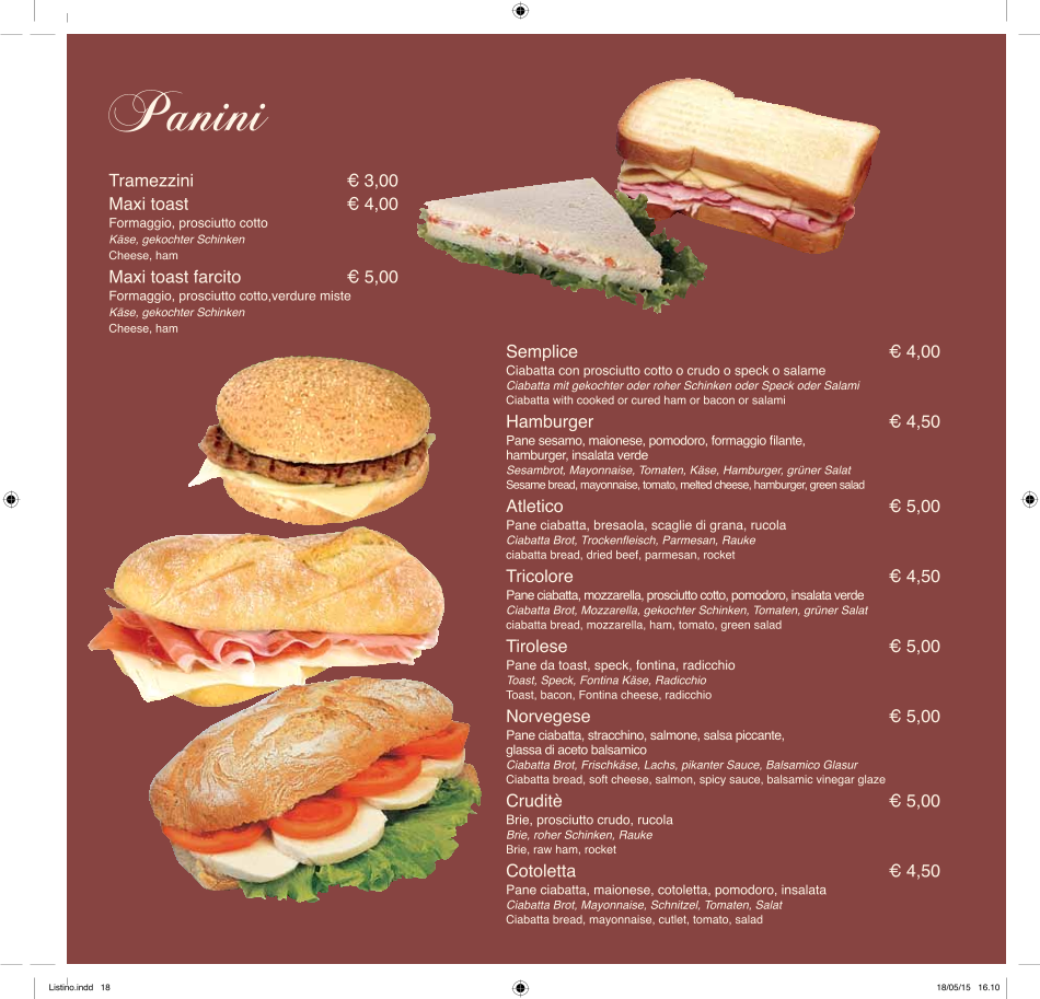 Bar gelateriaCorona Menu